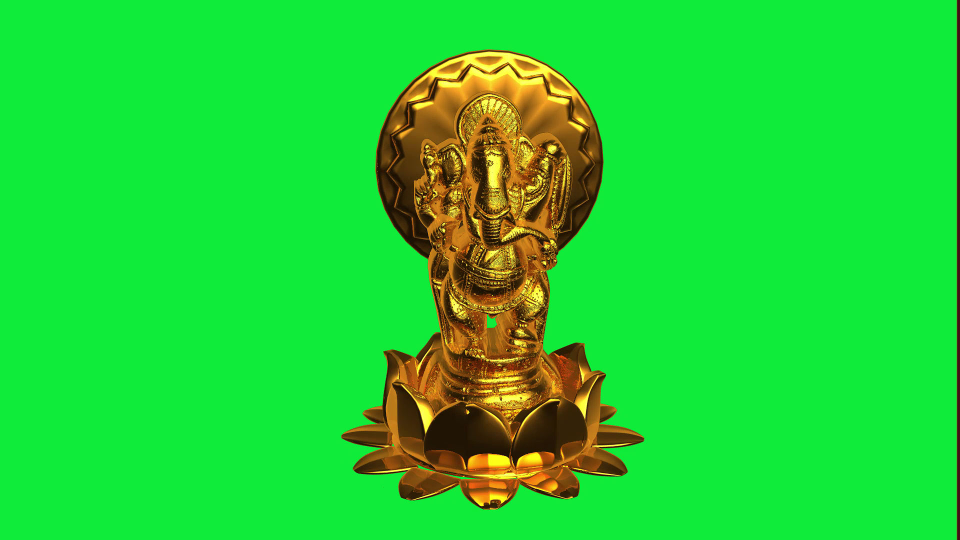 Today brings one of best and realistic golden effects of god Ganesh green screen and created in full HD 1920x1080p. This golden god ganpati green screen video effect hd footage created in loopable so that you can play this god animation as long as required with your projects as well. Here animated with fast motion rotating of lotus and behind chakras as well on the green screen background, by using any chroma key editing software you can remove the green screen and can place the your created footage or effect with your own style as well. So why are you waiting start to download this amazing free om ganeshaya namaha or god ganesh green screen video from the following links and enjoy your next making projects and save your valuable time by using prerendered our golden god ganpati green screen video as well.